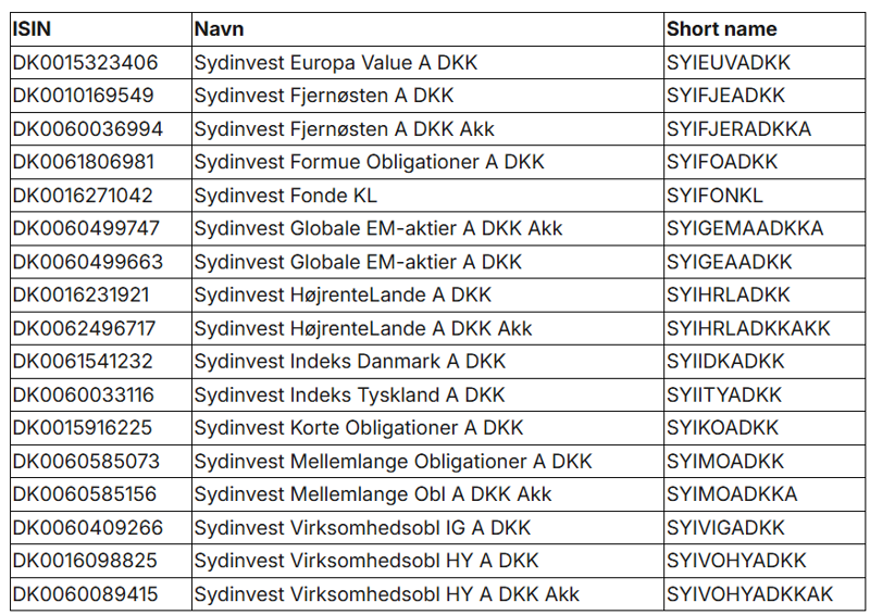 Anmodning om ophør af suspension af afdelinger under Investeringsforeningen Sydinvest